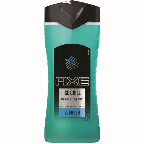 ג'ל רחצה לגבר אייס צ'יל של אקס, בעל ניחוח מרענן של מנטה קפואה ולימון.