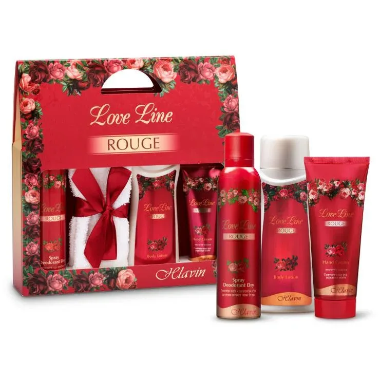 חלאבין לאב ליין ROUGE מארז: קרם ידיים, קרם גוף, דאודורנט ספריי ומגבת