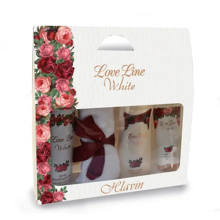 חלאבין לאב ליין WHITE מארז: קרם ידיים, קרם גוף, דאודורנט ספריי ומגבת