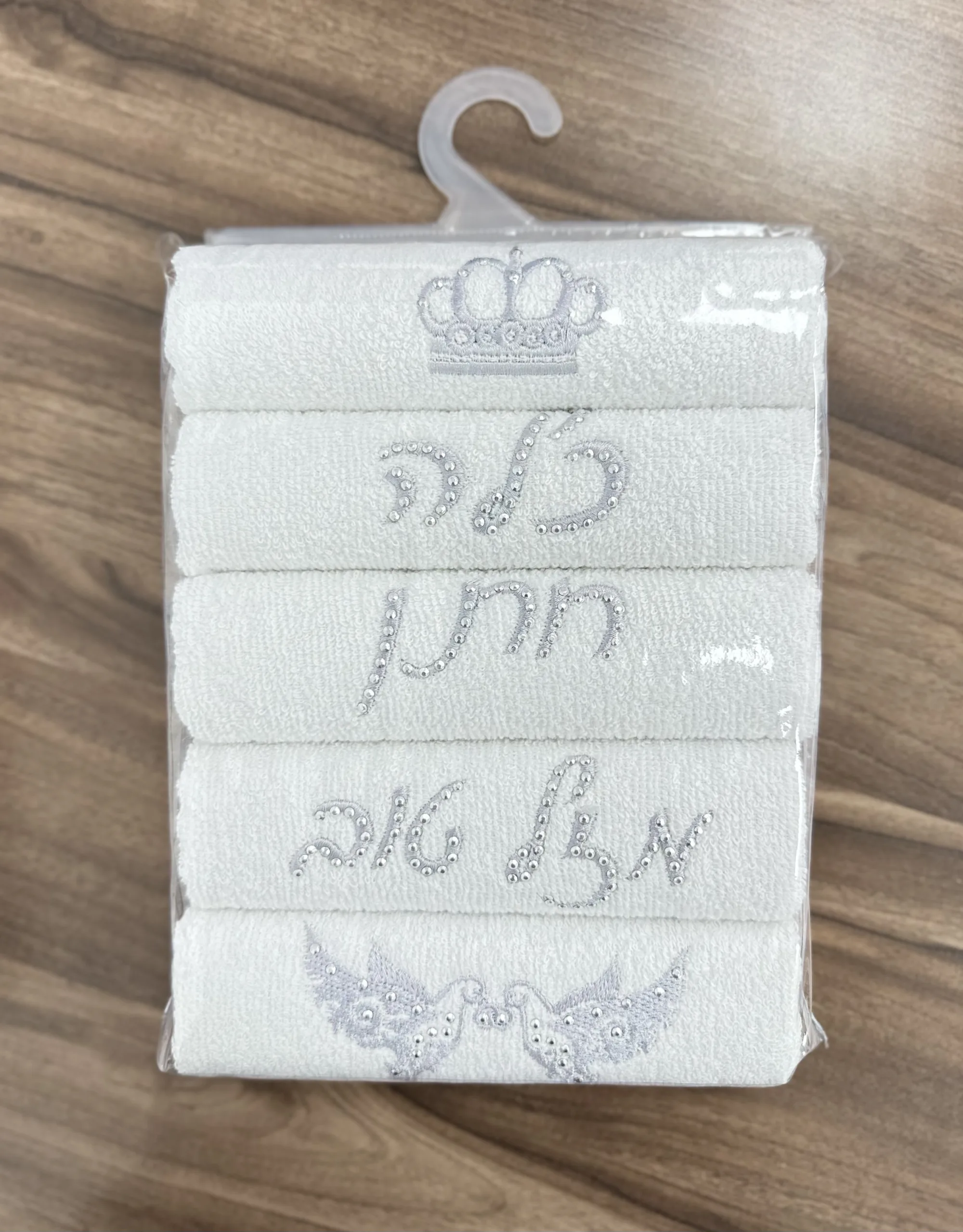 המוצר הוא סט של 5 מגבות עם כיתוב ברכות חמסה. המגבות מעוצבות בצורה ייחודית ומגיעות במגוון צבעים וגדלים. הן מתאימות לשימוש כמתנה או לשימוש יומיומי בבית.