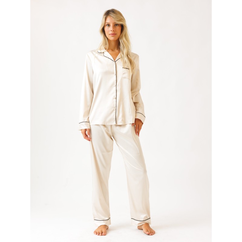נייט ליין 6650 חליפה מכופתרת מכנס ארוך-שמנת מידה L