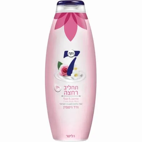 נקה 7תחליב רחצה בניחוח ורד ויסמין מועשר ב- 25% לחות לעור רך וקטיפתימעניק לעורך תחושה מפנקת ורכות מתמשכת.עשיר בלחות לטיפוח העור.מיד לאחר הרחצה עורך רך וקטיפתי למגע, מבושם בניחוח נעים הנשאר למשך שעות ארוכות.