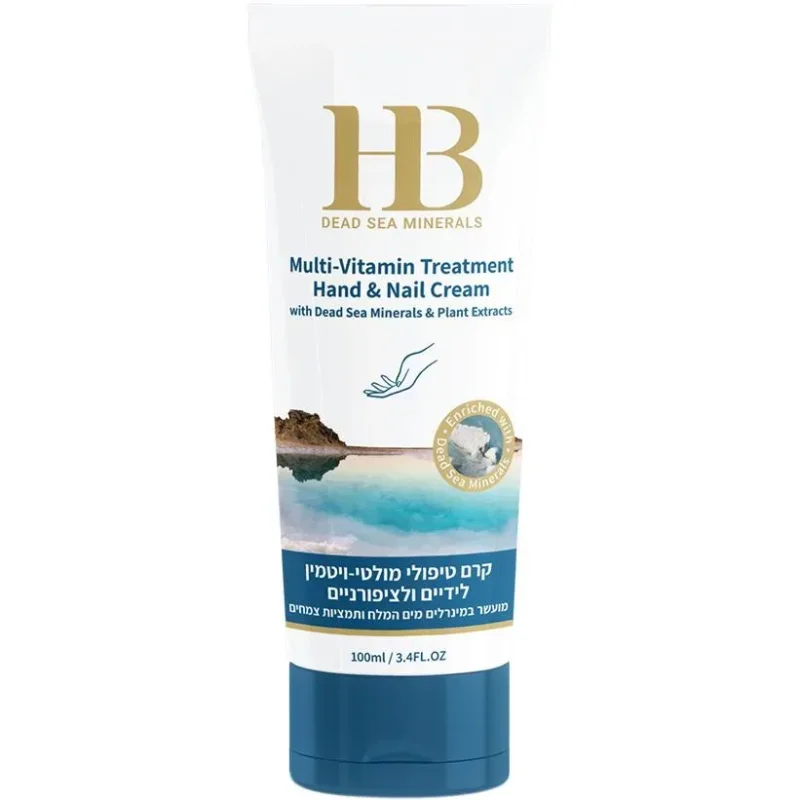 קרם טיפולי מולטי ויטמין לידיים וציפורניים 100 מ"ל HB הוא מוצר ייחודי המיועד לטיפול והגנה על עור הידיים והציפורניים. הקרם מכיל מינרלים וויטמינים חיוניים המסייעים לשמירה על עור רך, חלק ומוצק ומגן עליו מפני נזקי הסביבה השונים.